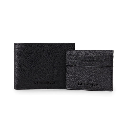 Emporio Armani Black Grained Leather Wallet & Cardholder Gift Set