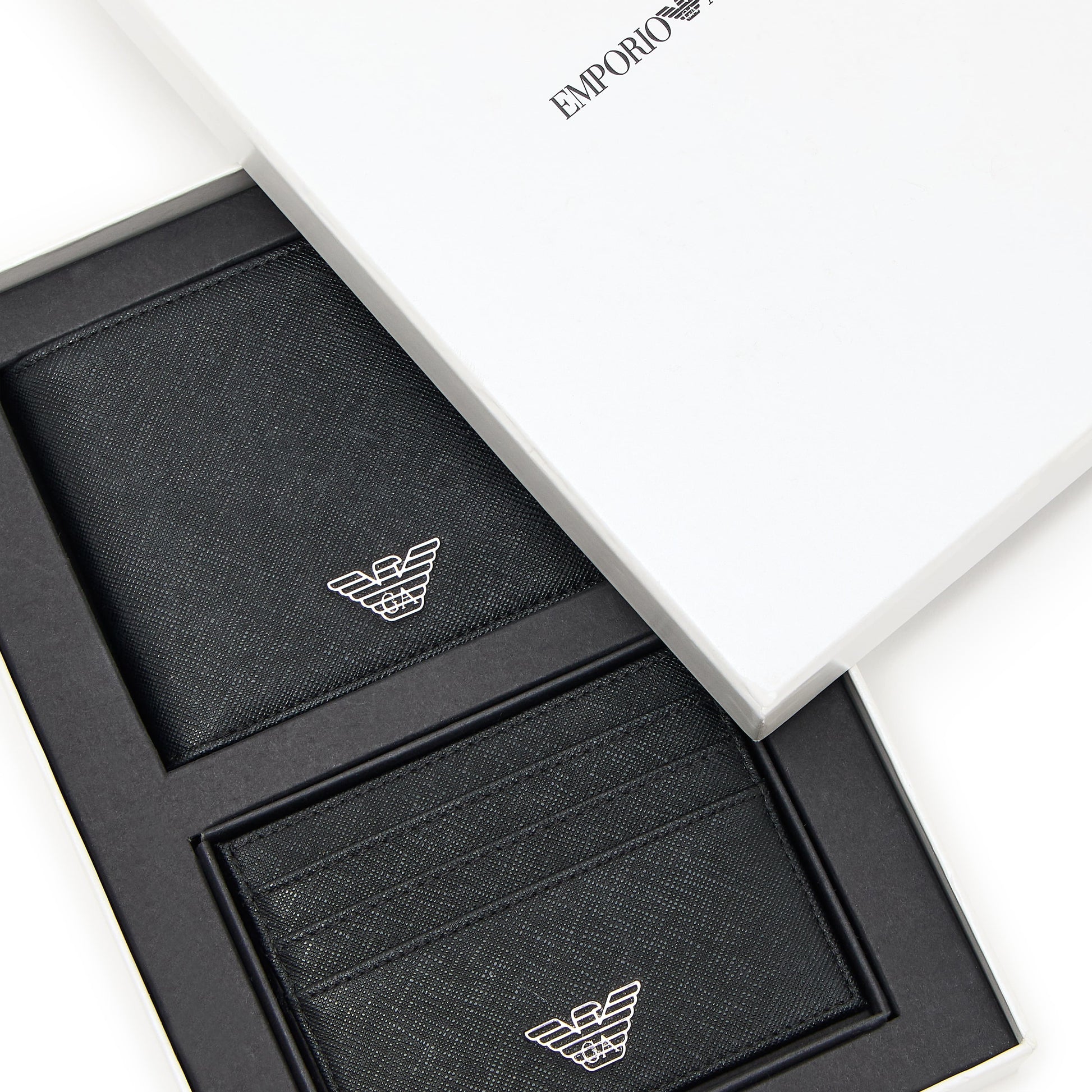Emporio Armani Business Regenerated Wallet & Cardholder Gift Set in Black