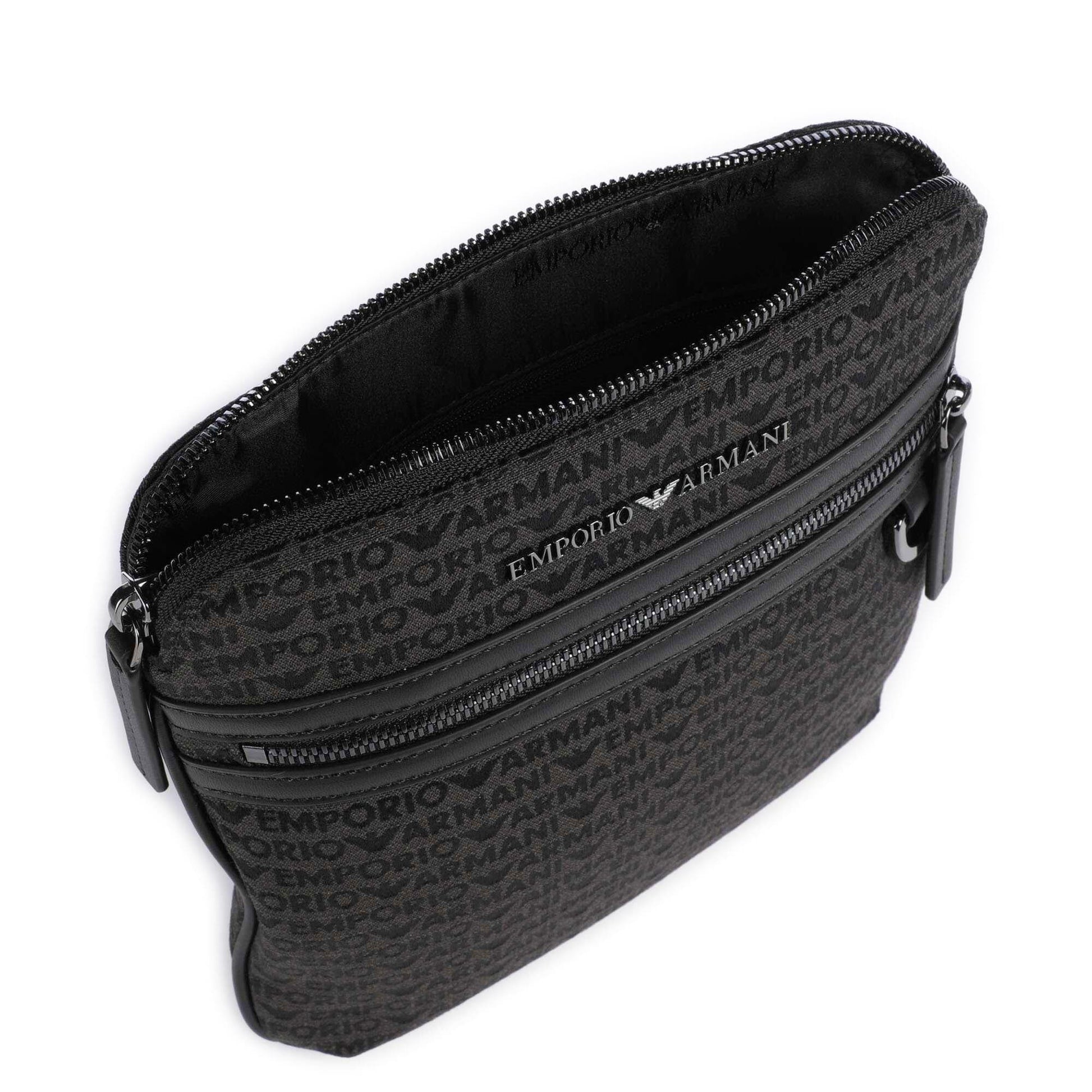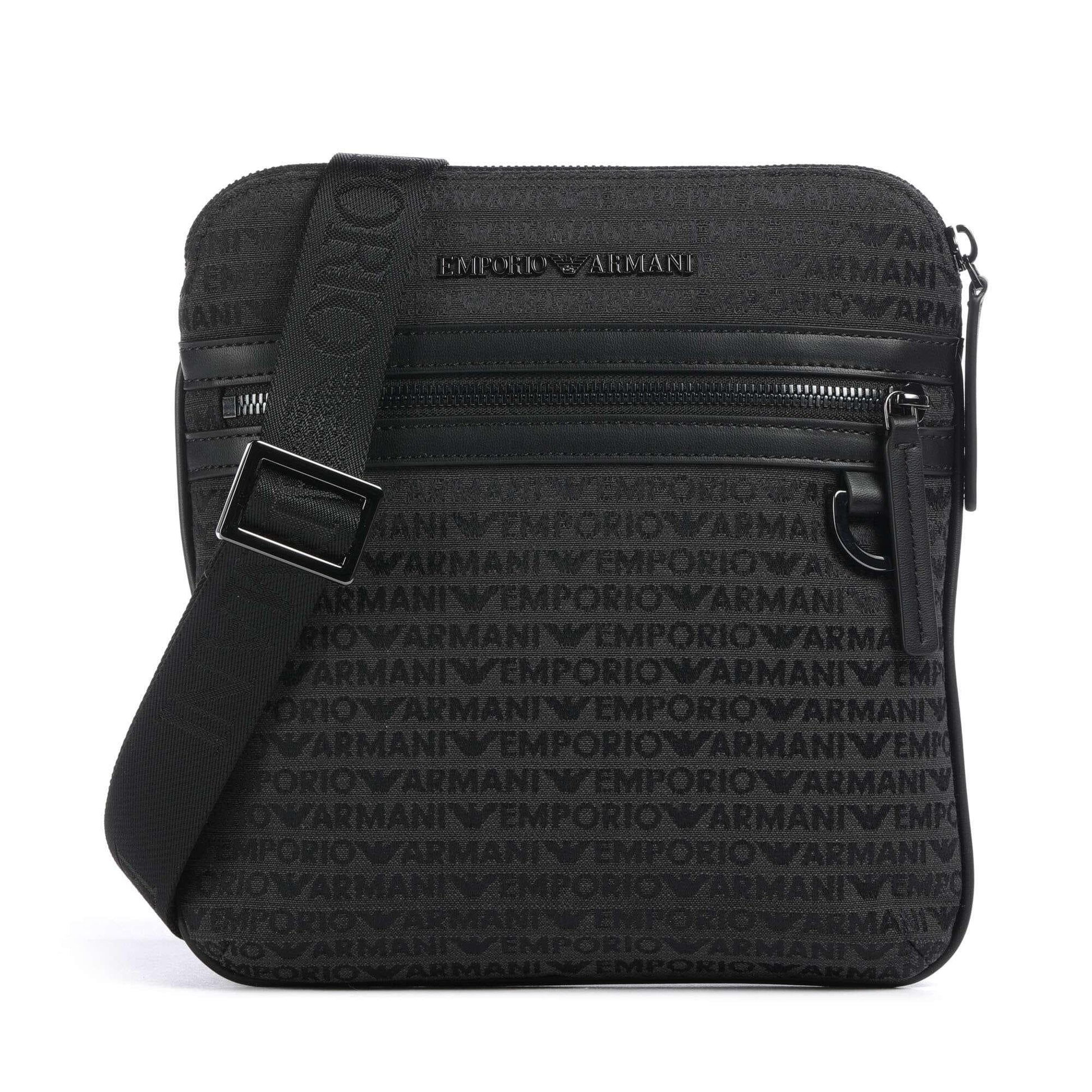 Emporio Armani Logo Jacquard Crossbody Bag in Black Canvas