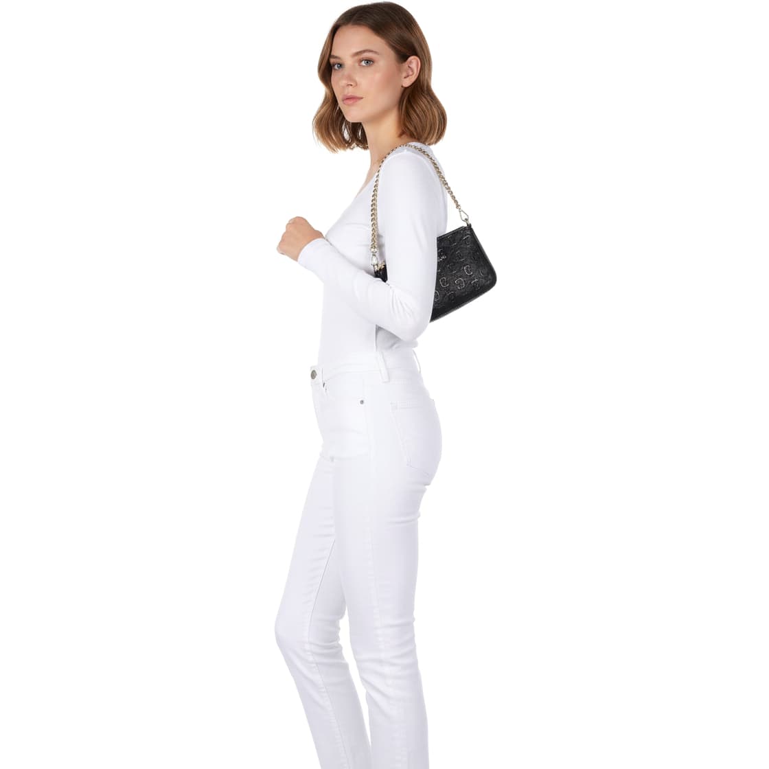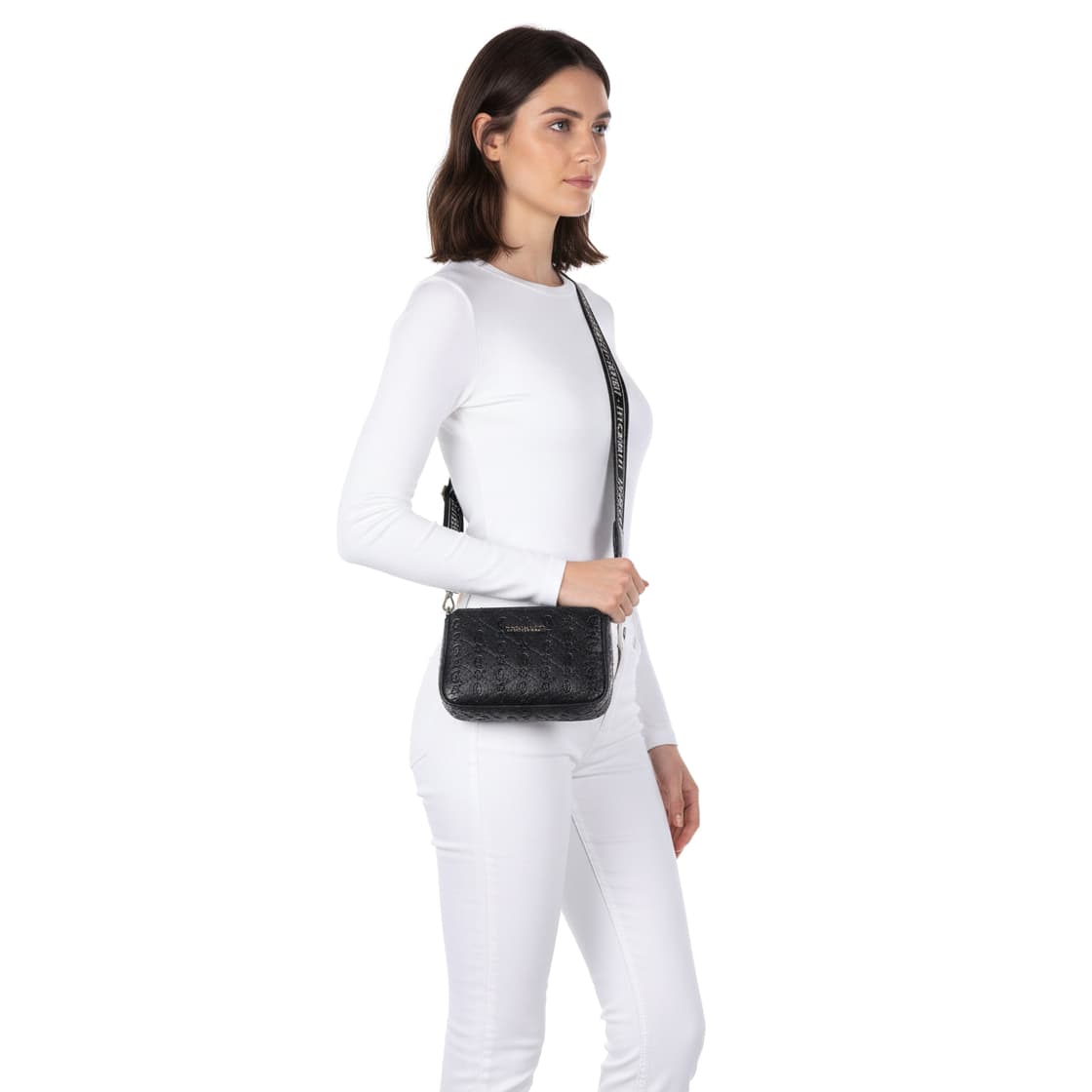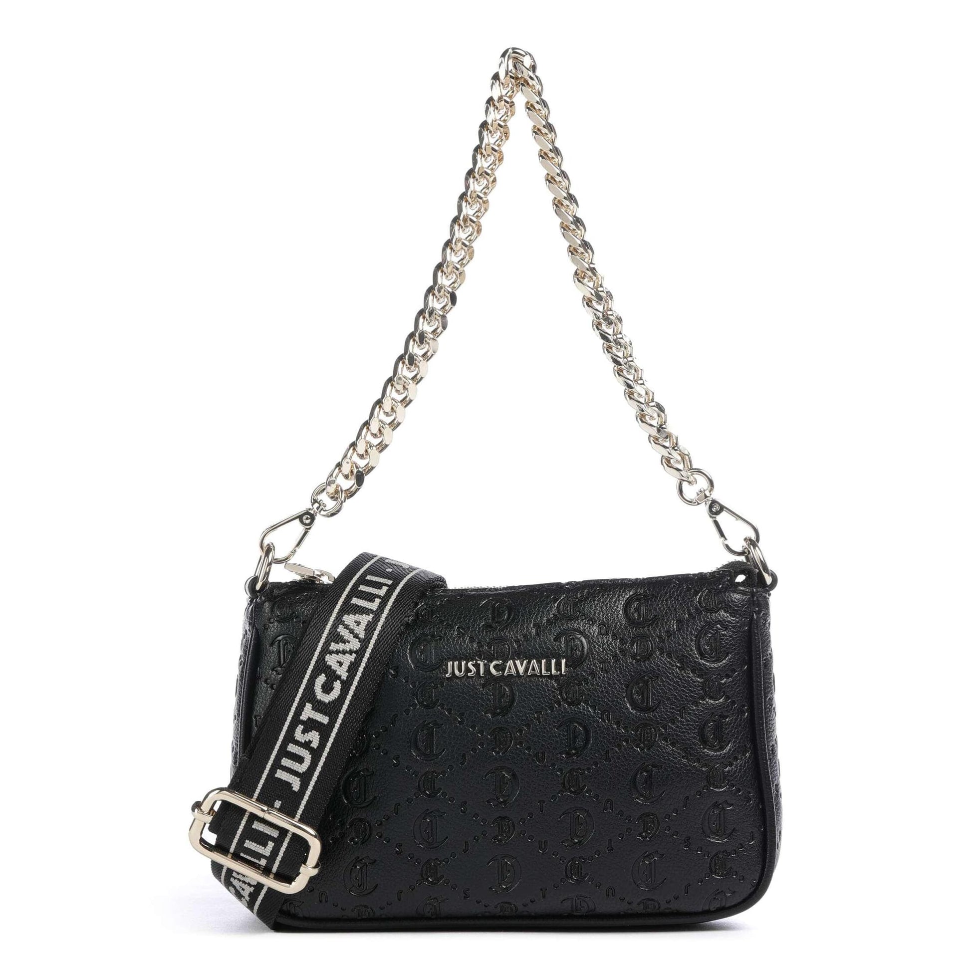 A sleek blend of style and versatility, this compact Just Cavalli bag features bold logo embossing, gold-tone accents, and interchangeable straps for effortless day-to-night wear.