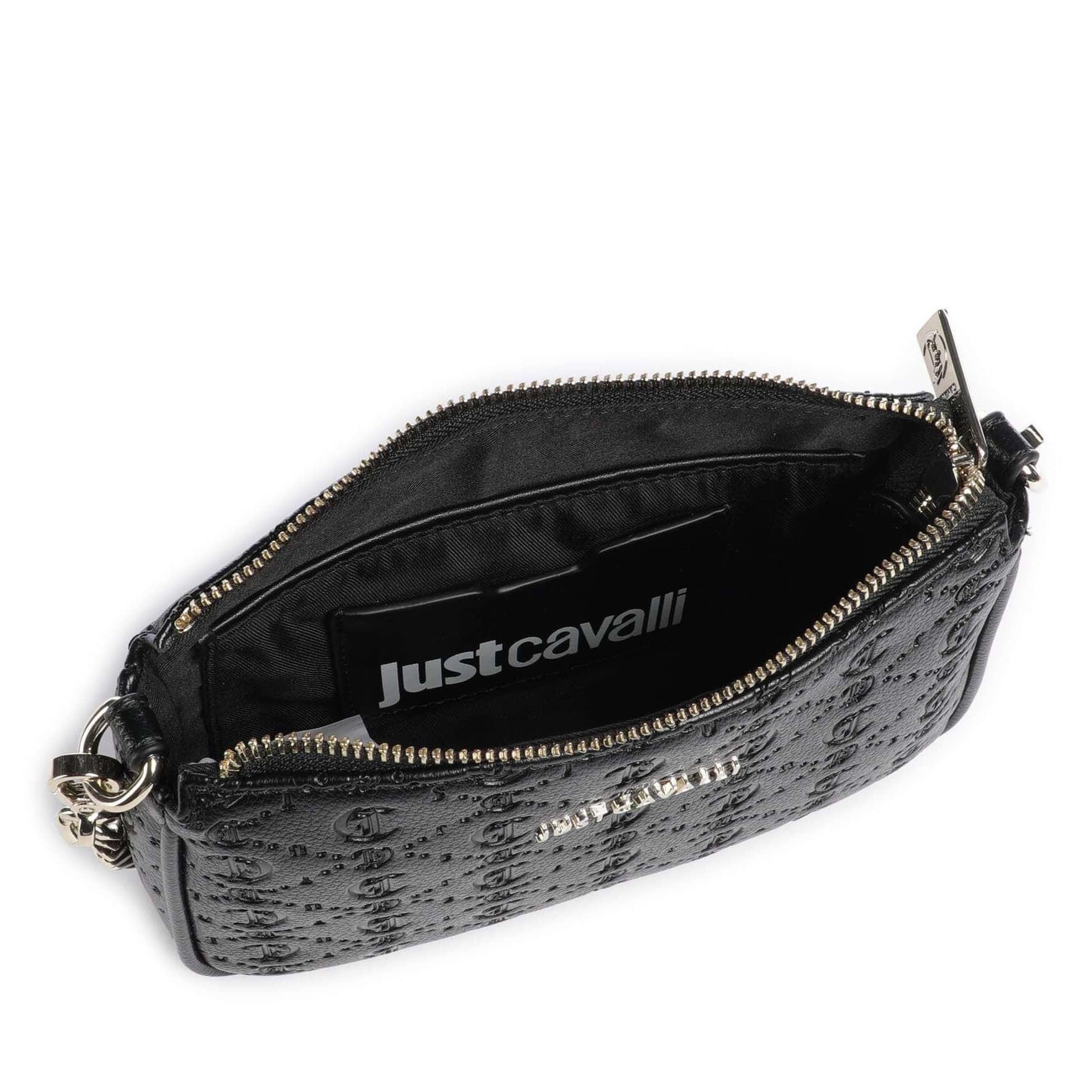 Just Cavalli All Over Gothic Shoulder Bag in Black with Logo Embossed