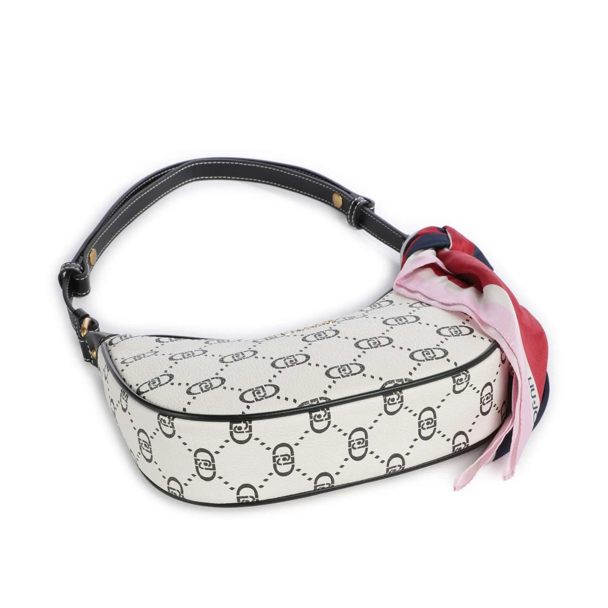 Liu Jo Selda Shoulder Bag in White Monogram with Decorative Scarf