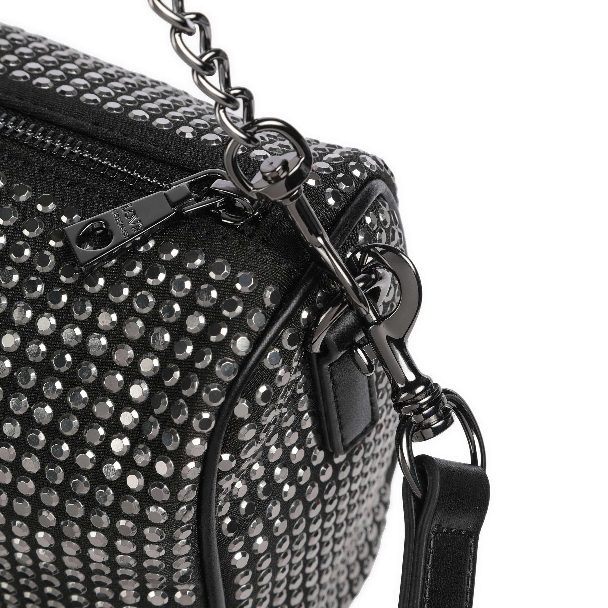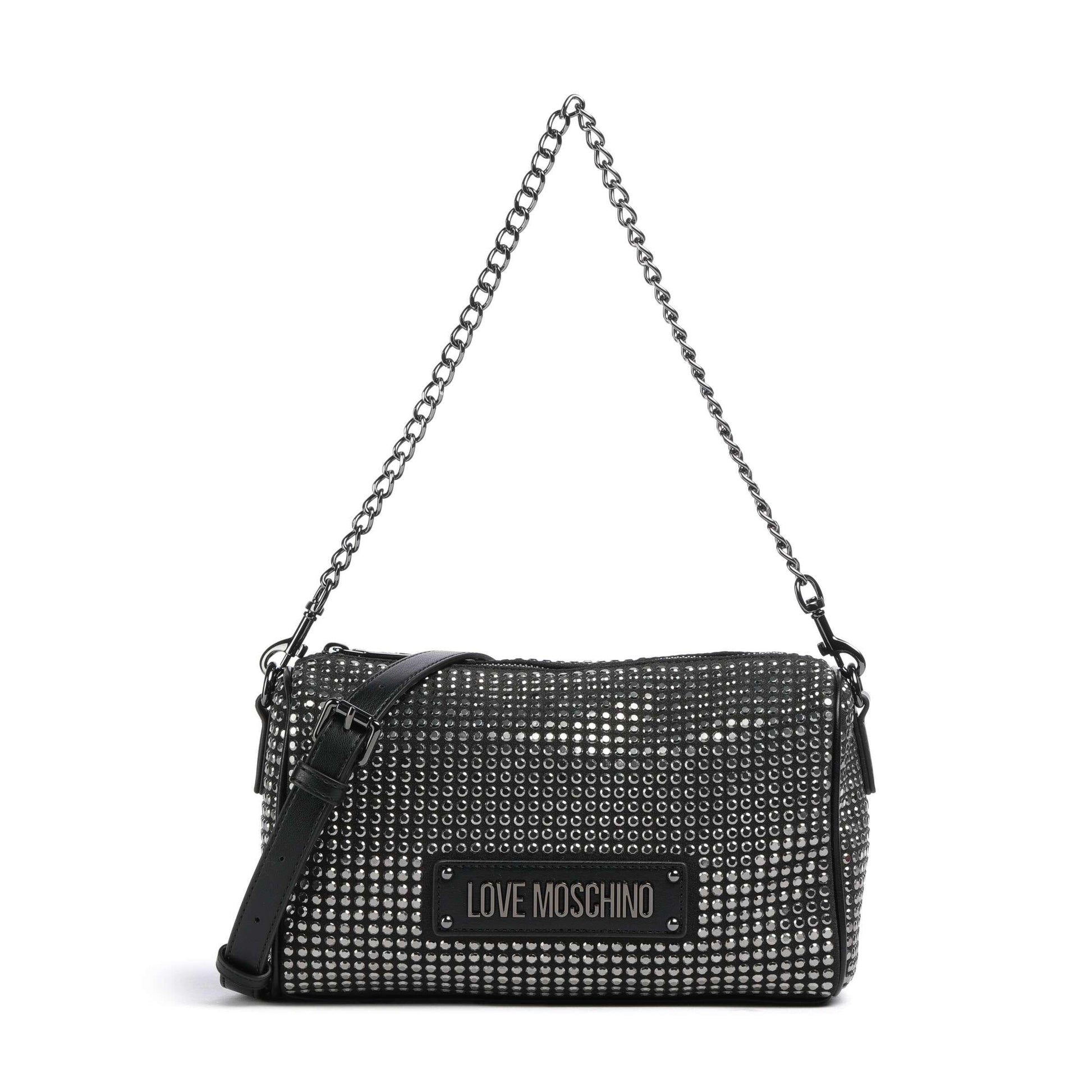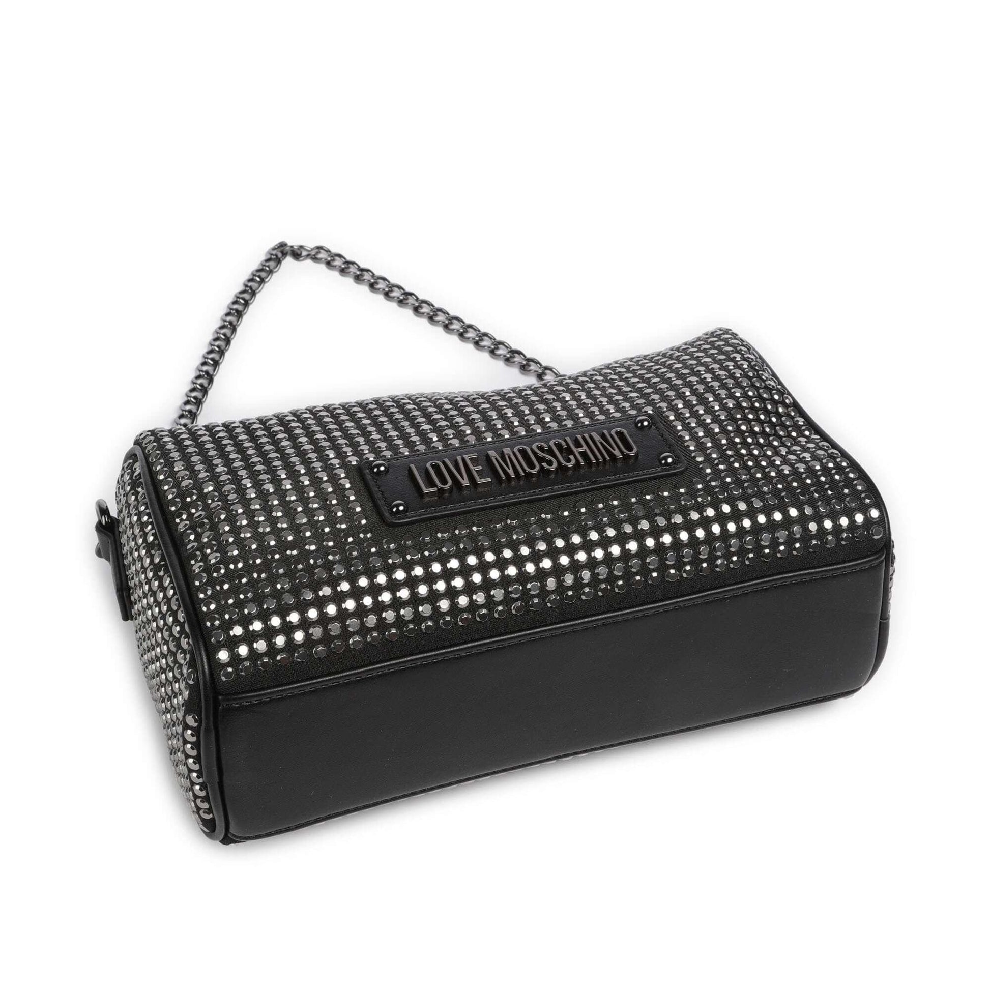 Love Moschino Sparkling Shoulder Bag in Black Fabric with Studded Detail